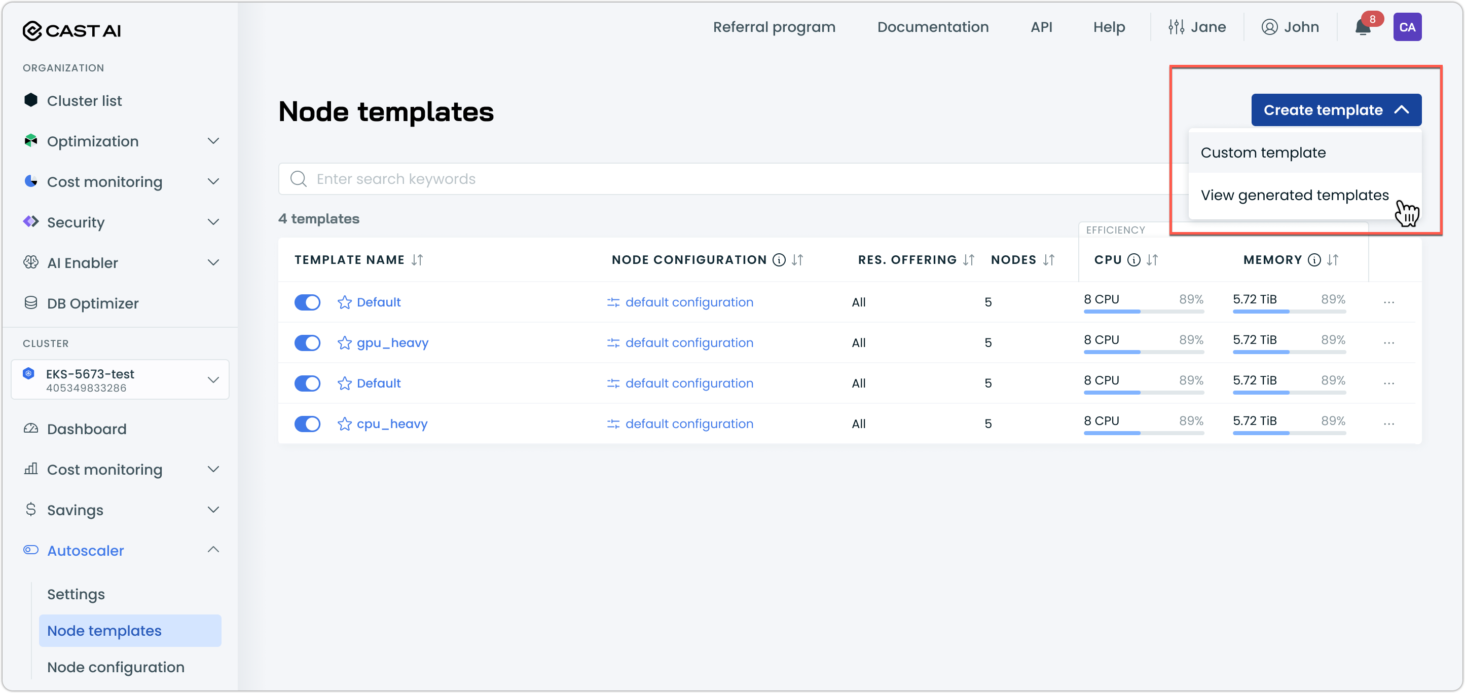 Node template creation now includes an auto-generation feature that provides intelligent template suggestions based on cluster workload analysis. This simplifies node template configuration by automatically recommending optimized templates tailored to specific workload requirements.