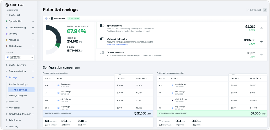 - Benchmarking against averages from all Cast AI customers for industry context