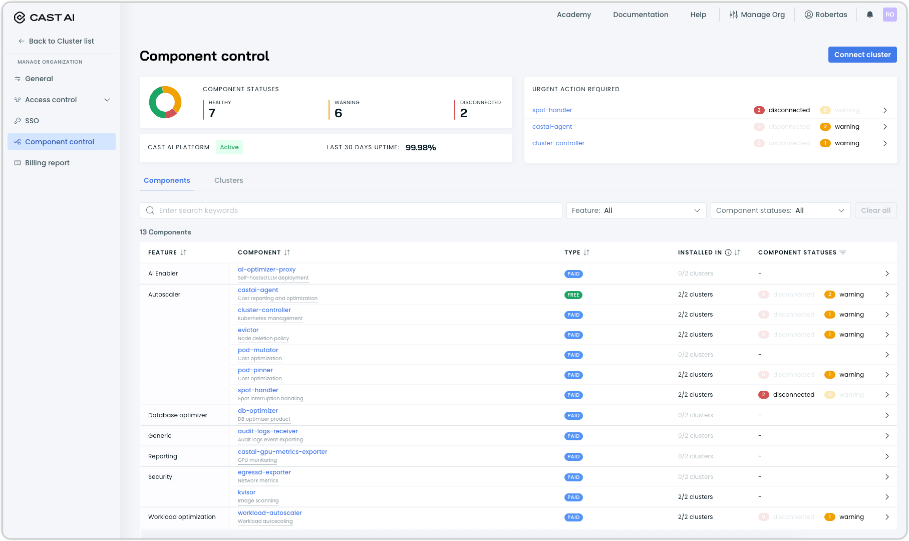 Component Control: Centralized Dashboard for Cast AI Components