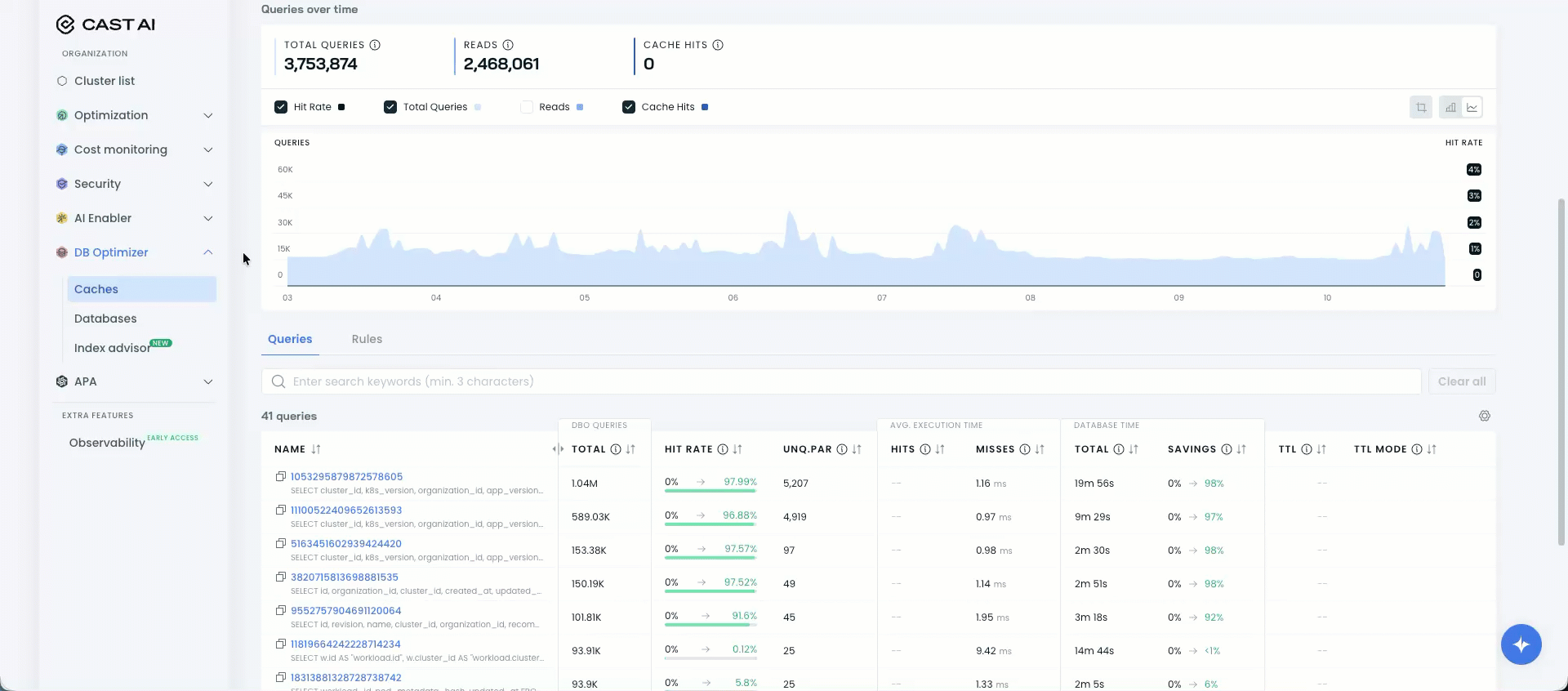 Database Optimizer cache views now include server-side query search functionality. Users can search for specific queries within a cache by entering search terms, with results filtering as they type.