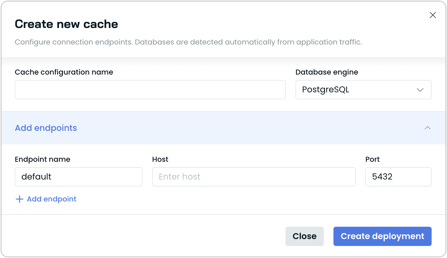 Cache configuration name: Enter a descriptive name for your cache configuration within DBO (e.g., "production-db-cache").
