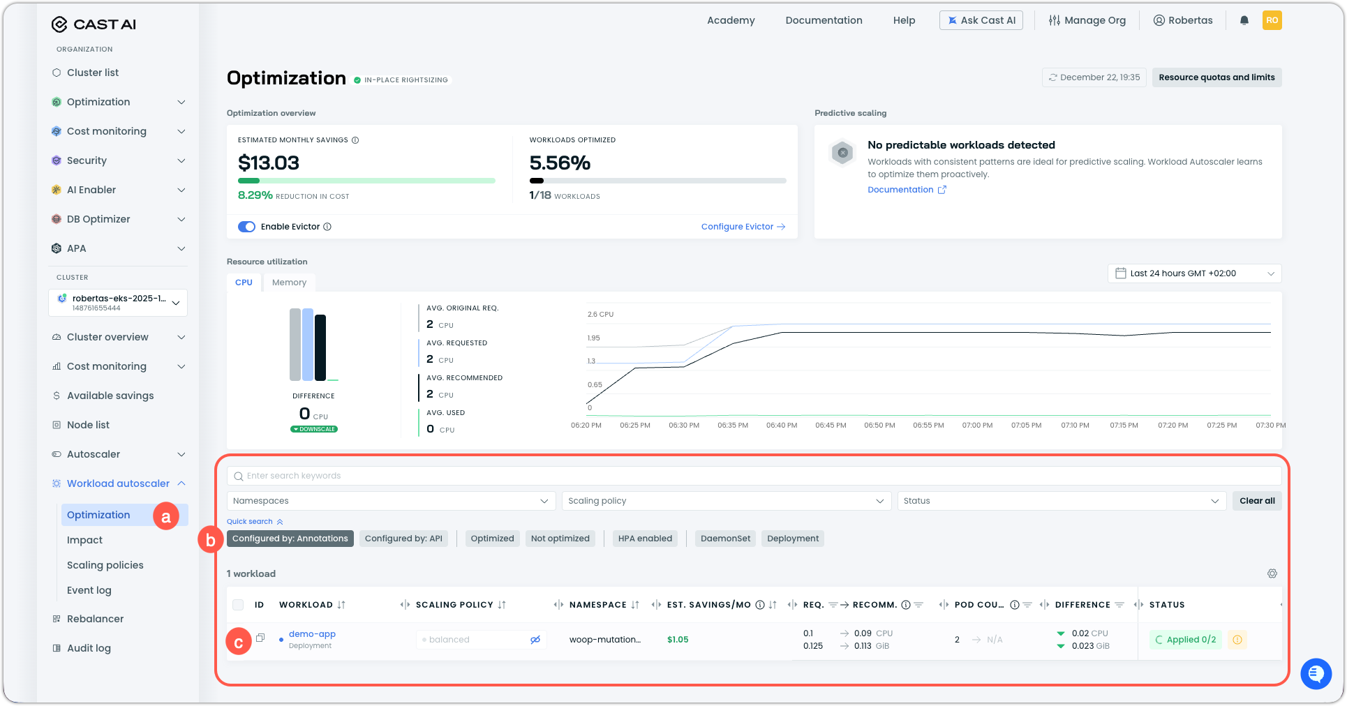 - Workload Autoscaler enabled on your cluster (see Workload Autoscaler overview)