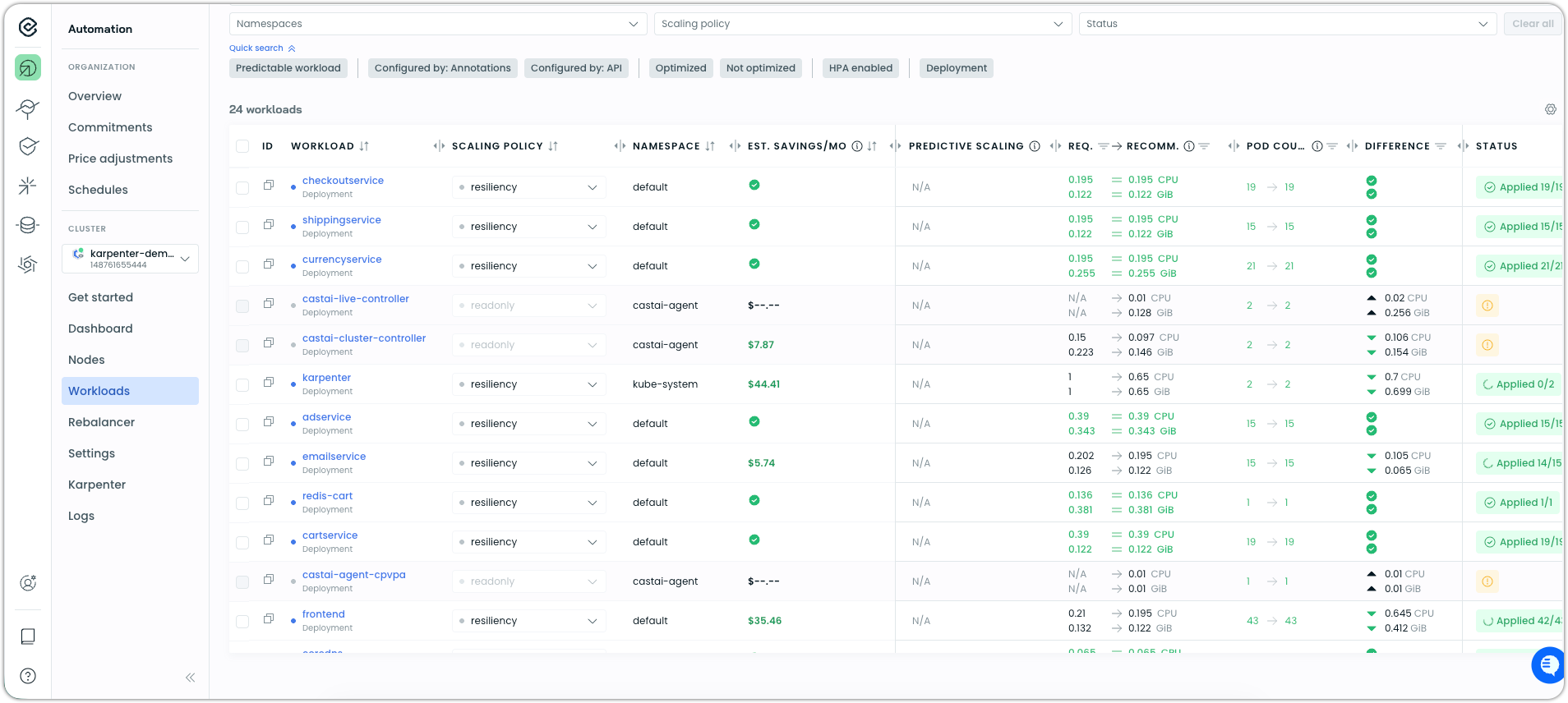 - Workload Autoscaler – Workload rightsizing details