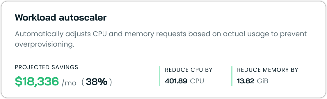 This analysis runs continuously, so the numbers stay current as your cluster changes.