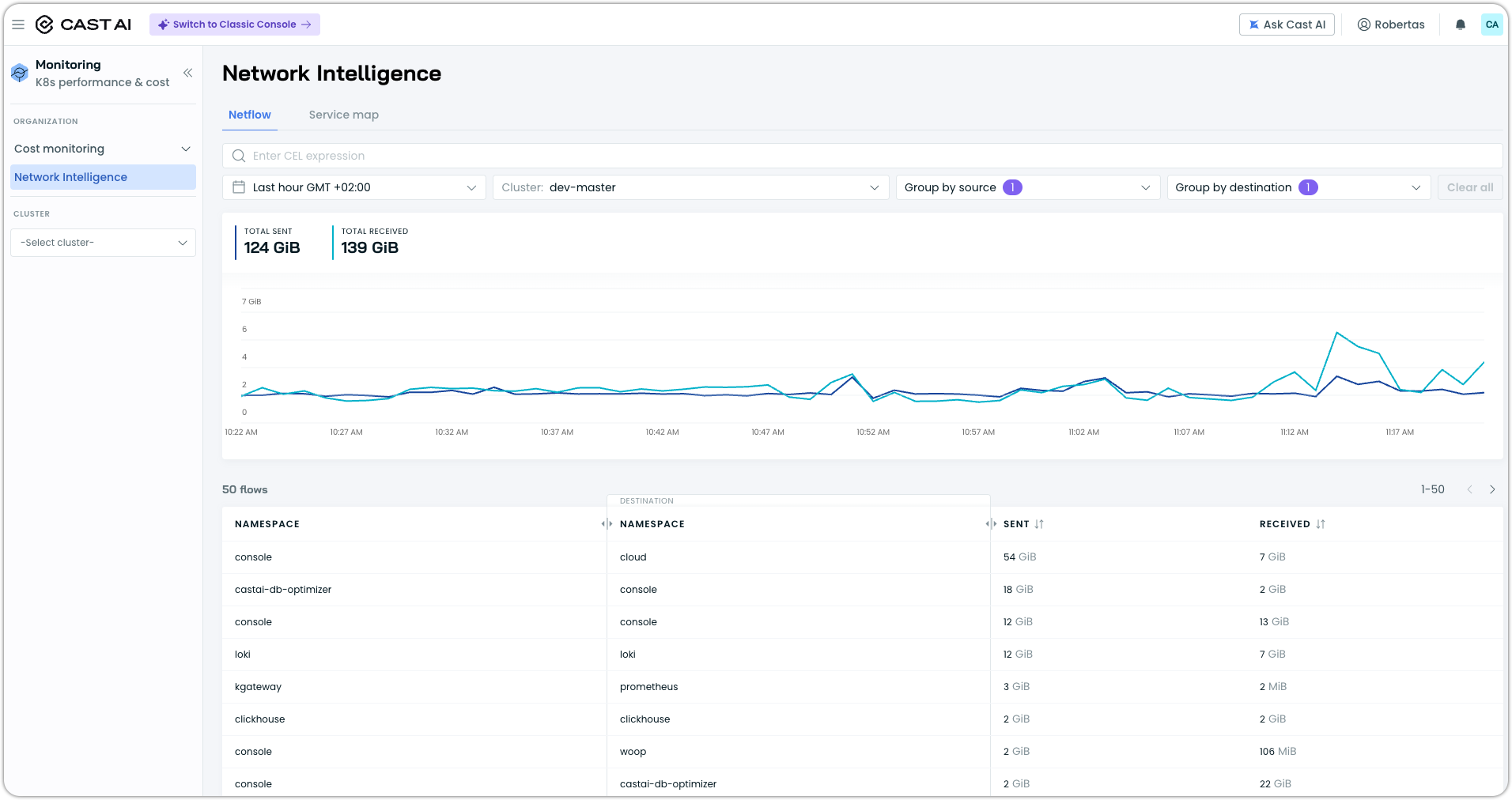 The Netflow collection is implemented with Cast AI Kvisor agent and can be installed via the helm chart.