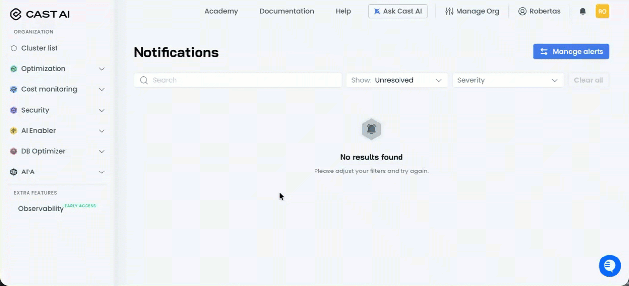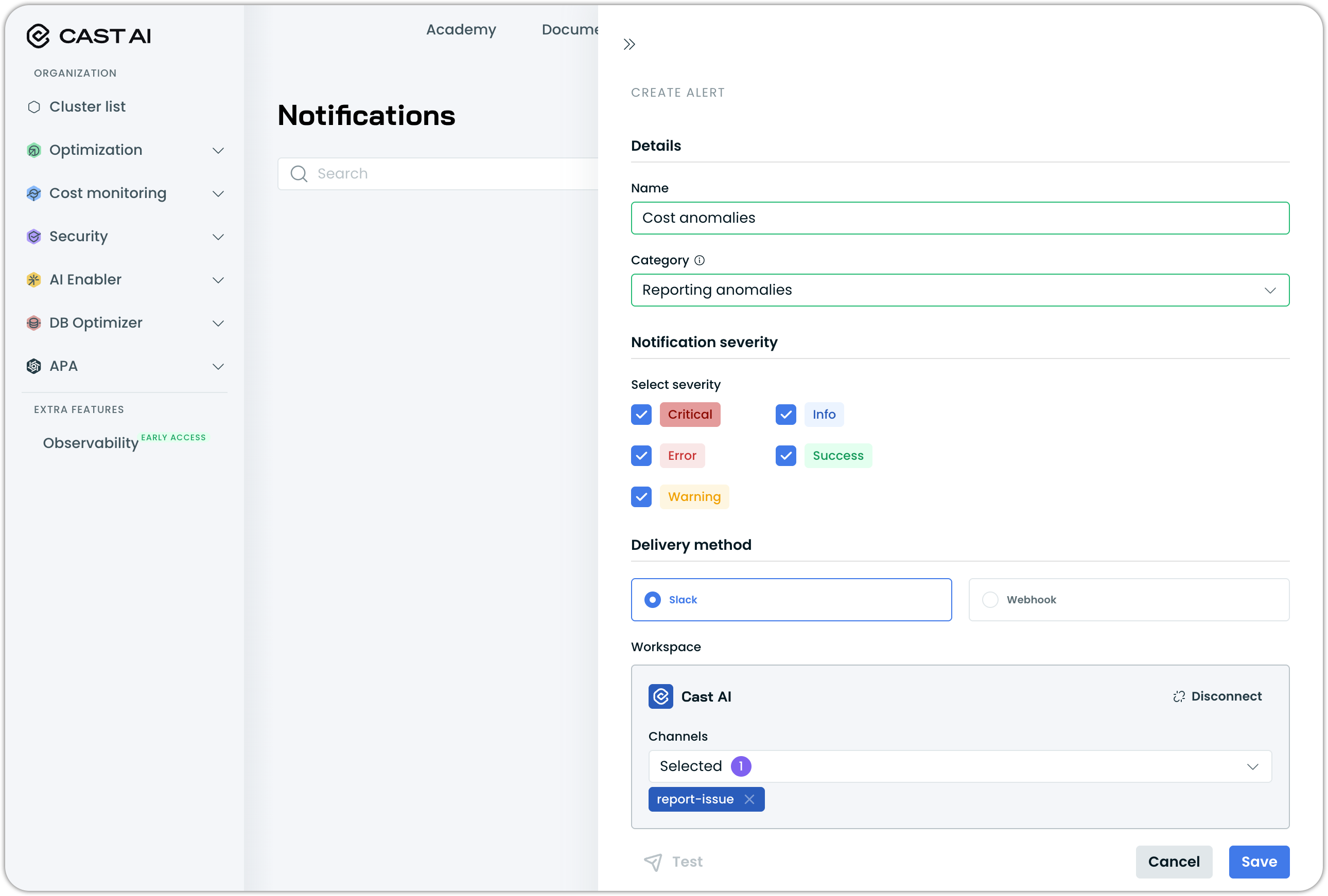 - Notifications — Learn about all notification types and severity levels available in Cast AI