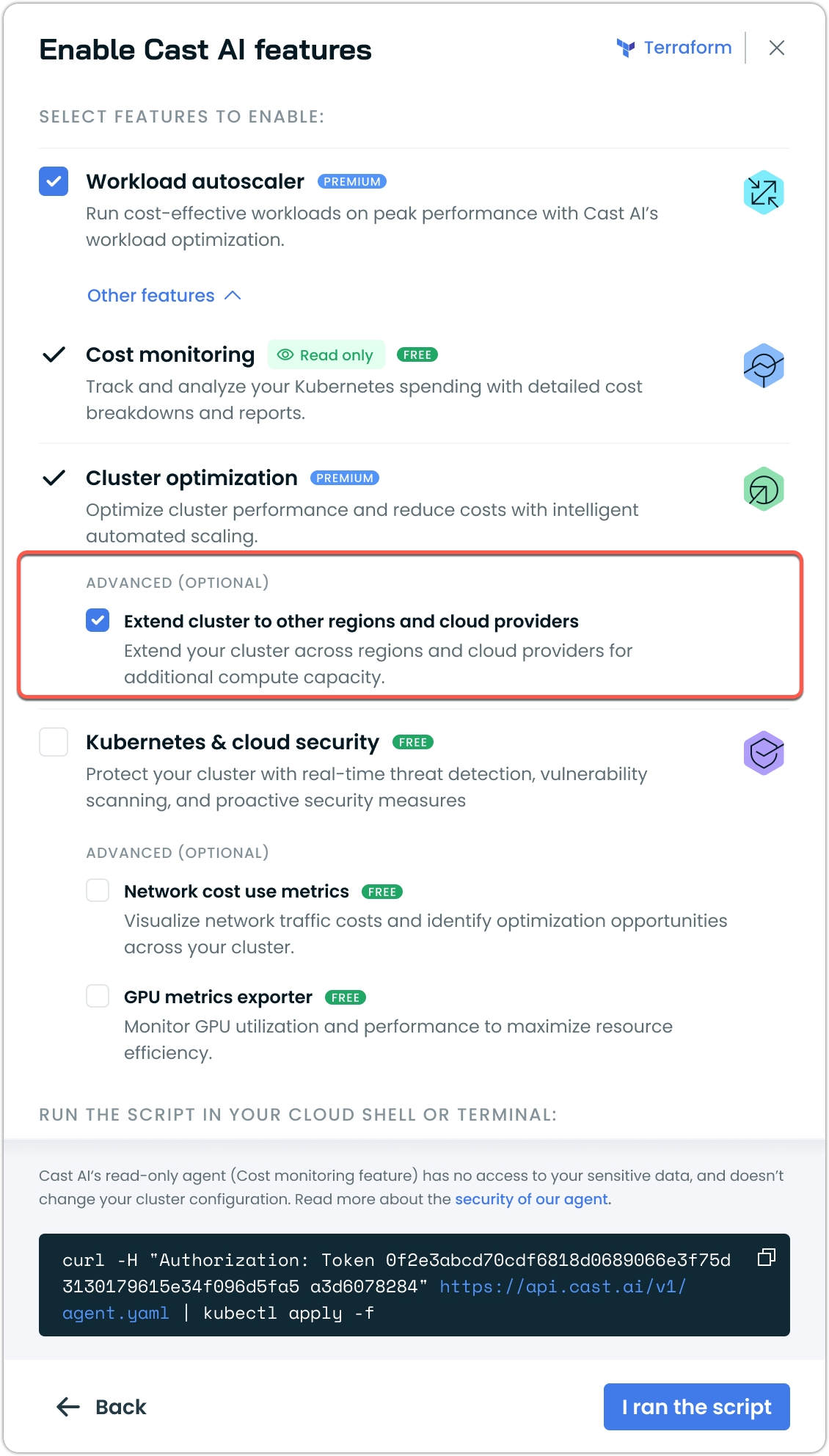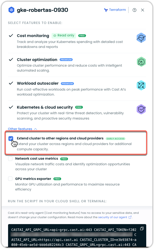 Under Other features, check the box for Extend cluster to other regions and cloud providers