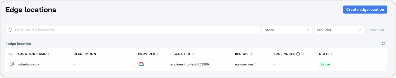 Edge locations define the regions where edge nodes can be provisioned. Each edge location is cluster-specific and requires its own setup.
