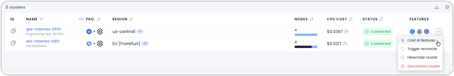 - Click on the ellipsis and choose Cast AI features