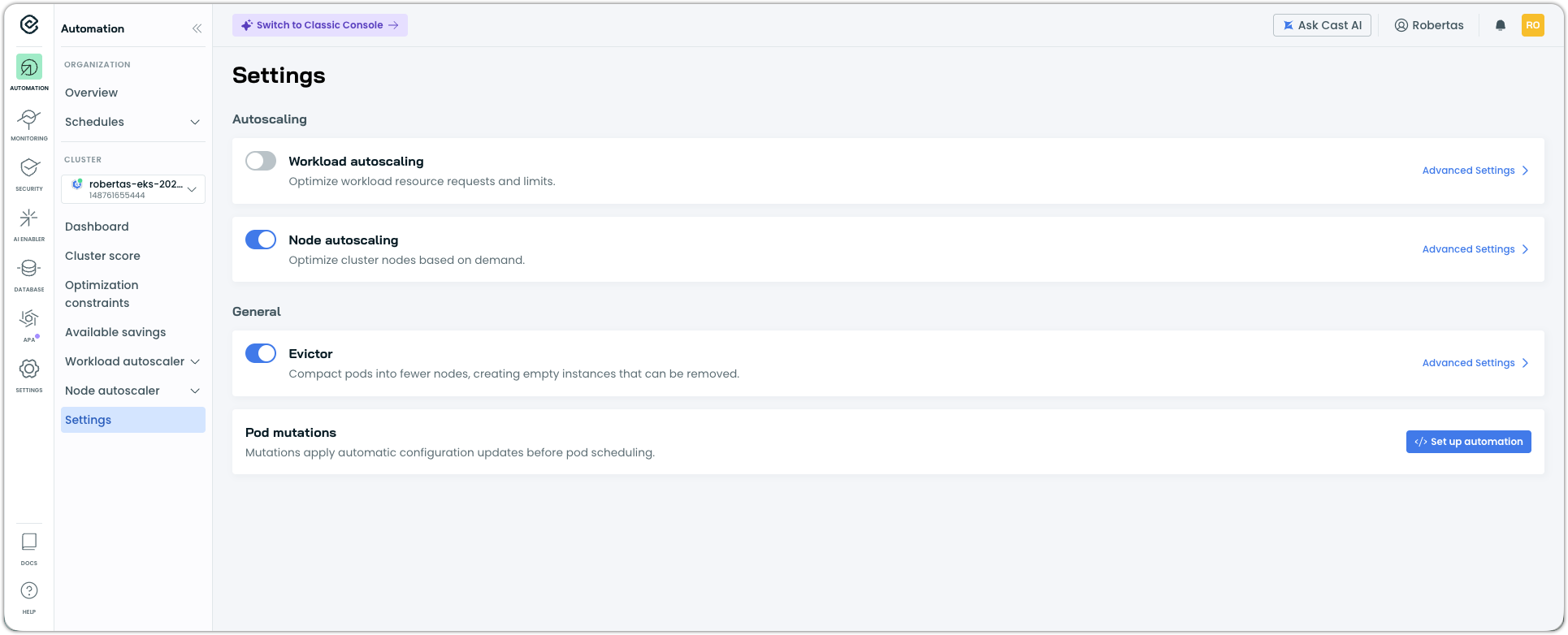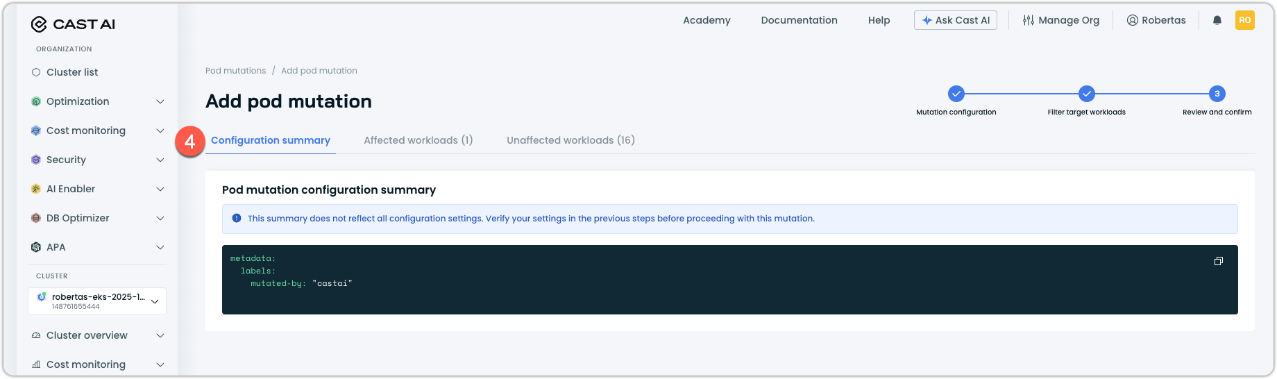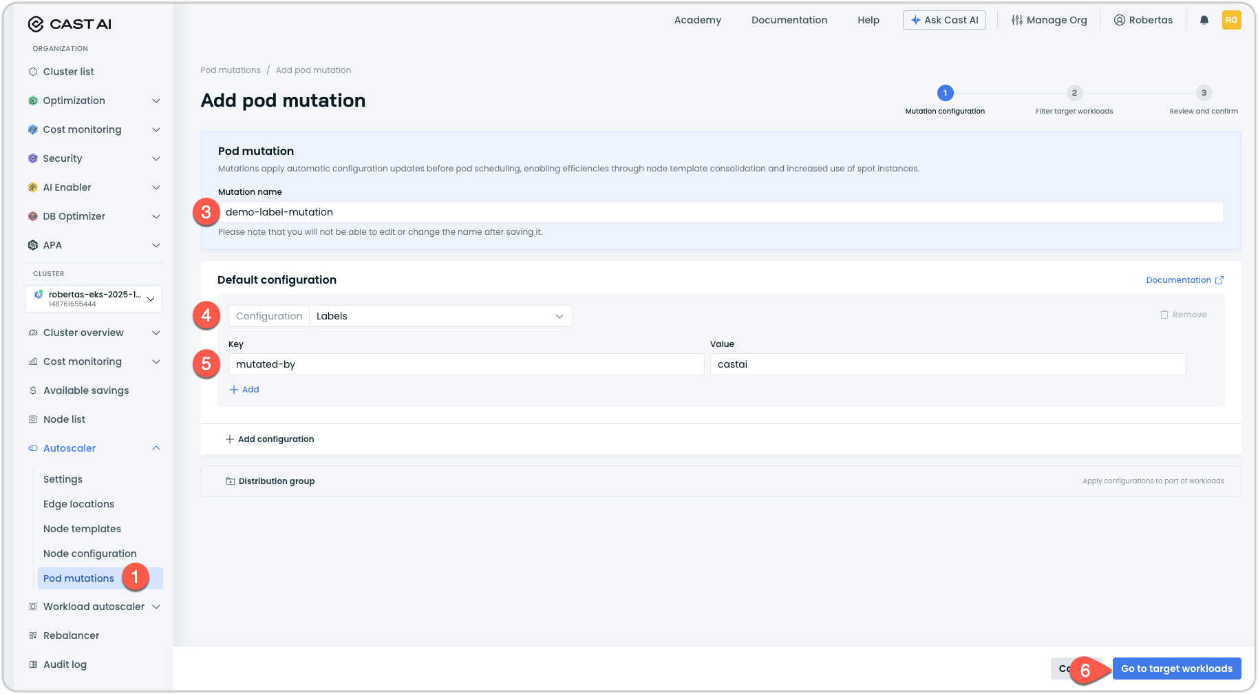 In the Cast AI console, navigate to Autoscaler → Pod mutations.