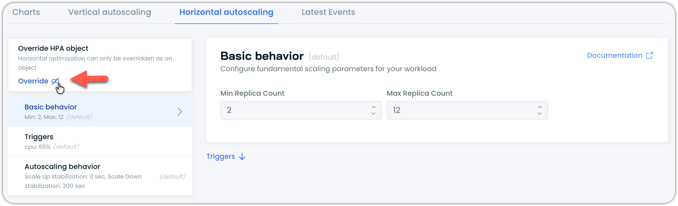 Overrides are not recommendedFor most use cases, configuring HPA at the scaling policy level is the preferred approach. It provides consistent settings across workloads and reduces per-workload management overhead. Use workload-level overrides only when a specific workload needs settings that differ from its policy.