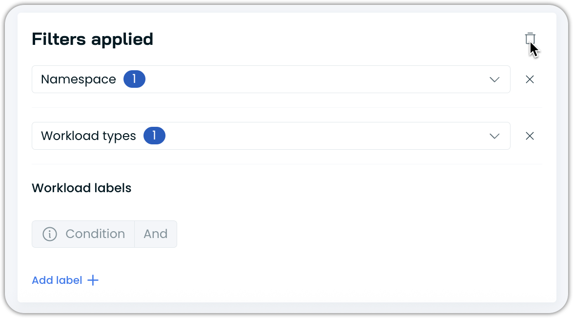 - Configure namespace, workload type, and label filters