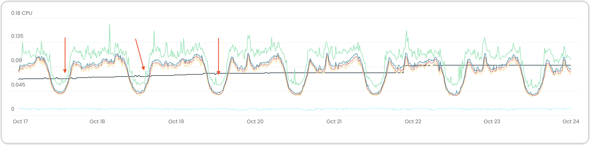 - CRD retention: Recommendation CRDs stay in the cluster for the full look-back period even when no pods are running